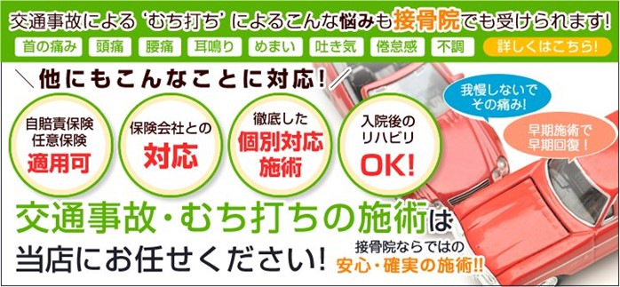 交通事故に遭われた時は是非、むち打ち交通事故治療が得意な福島八木田整骨院をご利用ください。